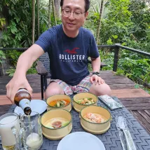 The experience of living in a primeval forest. The boss can speak English and is very enthusiastic.