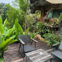 This was my third time staying at Bura Resort. It is a lovely resort style accommodation. The rooms are very spacious, and the bathroom is huge. Good air con and wi fi. It was the hot season and the grounds had that very dry feel, different to the other occasions I have stayed. The small verandahs attached to each room are a pleasant place to sit, drink and enjoy the end of the day. Staff most helpful. We were extremely busy and up early and gone so didn’t get to enjoy breakfast. You will need a car to get to the resort. Being on the hillside it is noticeably cooler than down in Chiang Rai. There are restaurants, markets and 7/11s within a short drive.