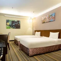 Rooms are spacious and beds are comfortable. No toothbrush/paste provided but slippers are. Hotel is slightly old and worn out but otherwise clean. Staff were friendly and professional. Breakfast is basic but okay tasting.