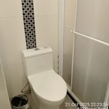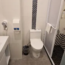 Toilets are clean, but without a bidet. And you are not allowed to flush with toilet paper.