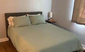 The home features two bedrooms with queen size beds and 1/2 story bedroom with a twin XL and twin bed. It has one and a 3/4 bathrooms. The full bathroom is on the 1st floor situated between the queen bedrooms and has tub/shower combo. The 3/4 bathroom in the basement has a shower, toilet, and sink (see photos). The home has a front porch with a table and chairs to relax in the mornings or evenings. It has a large backyard with a covered porch, but currently under repair (be careful when using the yard). The kitchen includes full size appliances (refrigerator, stove, microwave, and dishwasher). It is conveniently stocked with a Keurig, toaster, cooking and bakeware, dishes, and cutlery. There is a washer and dryer in the basement. The home has a driveway that can accommodate two cars and also has free on street parking.