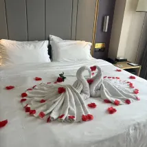 The bed was very comfortable, the room was spacious, and the smart furnishings were a nice touch. Cleanliness was up to standard. I was a bit startled when music suddenly started playing while I was showering, and it took me a while to find the switch to turn it off. A heads-up about this feature during check-in would have been helpful. On the plus side, they also offer a morning airport drop-off service, which was very convenient, and the price was very reasonable, offering great value for money. Overall, a good experience.