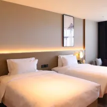 The room was well-equipped with all the basic amenities. The bedding was pristine, the tables and chairs were in perfect condition, and the cleanliness was absolutely impeccable – truly spotless! The front desk staff were incredibly warm and attentive, making me feel completely at ease. The hotel's location is also great, and they even offer a complimentary airport shuttle service. I'd definitely recommend this place to my friends!