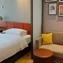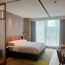 Folks, I absolutely have to recommend this hotel to you! My stay at this hotel was absolutely fantastic. The location is simply unbeatable – incredibly convenient for transportation, with plenty of fantastic food and attractions right around the corner. From the moment I stepped inside, you're greeted by an air of sophistication. The lobby is spacious and bright, with luxurious yet welcoming decor. The staff were incredibly friendly and attentive, greeting every guest with a smile and making you instantly feel at home. And the rooms? Simply beyond words! They're incredibly spacious, beautifully furnished, and so cozy and comfortable. The bedding was incredibly soft and skin-friendly, feeling like you're sinking into a cloud, guaranteeing a perfect night's sleep. The bathroom was spotless, and the toiletries were all high-quality. Overall, I was incredibly satisfied with this stay, and I'll definitely choose this hotel again on future visits to the area. Highly, highly recommend!