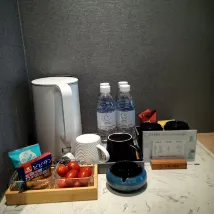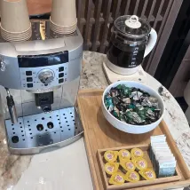 The hotel has a dedicated parking lot which is very convenient. The coffee machine also comes with mate and sugar. The taste is good. The room is also clean and the service is good.