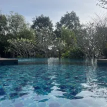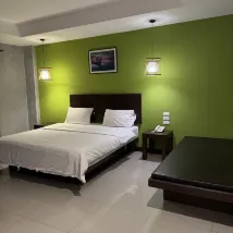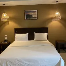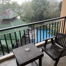 The atmosphere is good, the room is very spacious and clean. We slept on the 2nd floor of the hotel building. The water flowed very strongly. There were amenities and coffee served in the room. You can order dinner at the hotel. The food is delicious and not expensive. Breakfast is served like other hotels. There is also a swimming pool to play in. I was impressed. 😍