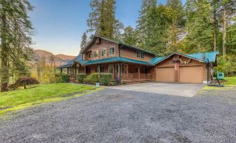 Tucked away at the end of a quiet road, not far off of Highway 26, you’ll find the Iron Mountain Lodge. This incredible private retreat sits on more than 10 picturesque acres of lawn and woodlands. The impeccable location is a perfect place to stay while you enjoy the countless outdoor and adventure activities throughout the entire Mt. Hood region.