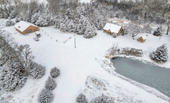 This Rustic Cabin Retreat is surrounded by trees for privacy on 5+ acres, but is very close to town for the conveniences you may want while on a getaway! Cabin offers a full kitchen, bath, living room with wood fireplace, main floor bedroom with a set of double bunk beds, and a loft with a queen bed. The outside is full of trees, a trail, a small pond, and the creek. Wilderness galore with deer, turkeys, birds of all kinds! There's a "kid's fort" nestled into the trees that offers a little fun privacy for the includes a mini fridge, microwave, bean bags, futon in the loft, and a TV for watching DVD's.About pets:Pets allowed: dogs less than 50 lbs per pet (limit one pet total).Please note there is a $100 pet fee/pet/stay..About checkOut:Check out before 10:00 AM.About children:Children allowed: ages 0-17.Please be extra mindful of the pond & creek!.About customRules:We have a creek and a pond on our property. Please be extra mindful around the water and don't get into/on the pond or the creek..We offer a trampoline and a tree swing for kids. We are not liable for any accidents associated with the trampoline or tree swing.,If you are bringing a pet, please keep your pet off the beds, and on leashes at all times while outside, and pay the extra fee of $100/pet/stay fee..About checkIn:Check in after 4:00 PM.About smoking:Smoking is not permitted.About minBookingAge:Minimum age to rent: 21.About events:No events allowed.