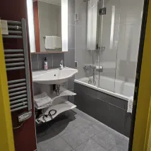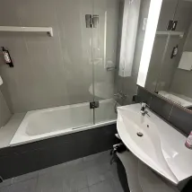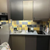 Amazing hotel and apartments!!! Everything is just super, very clean and tidy. Excellent kitchen with dishwasher! On the first floor you can get water and coffee for free. A whole bath, not a shower. Just really great!