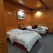 The standard room with a view faces the village below, not the street, so it's very quiet. Because it's so convenient and the owner is so friendly, I extended my stay for another night. The sightseeing bus stops right at the door, and it's a short walk to the fifth and sixth viewing platforms. Downstairs is a restaurant where the owner cooks all the food himself. If you're looking for value for money, this is definitely the place to stay.