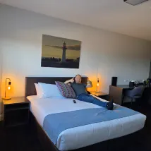 We had rowdy neighbours and when we told Cameron the following morning he upgraded us to a balcony suite. It is a newly renovated hotel with bar, bistro and ample free parking