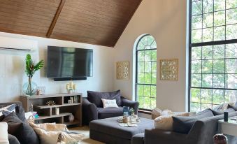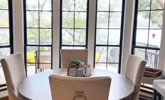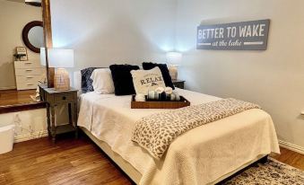 Our stunning rental is the ideal destination for those seeking a peaceful lakefront getaway. Indulge in outdoor activities like swimming, floating (our favorite!), fishing, tanning, star gazing, duck watching or simply lounging on the private dock while taking in the panoramic lake views.