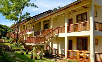 This is a true 'find'! A healthy walk into/from town, just far enough to be away from the traffic and crowds. Eighteen individual bungalows surround a beautiful pool. In my nearly two weeks there, I rarely observed more than one or two other people at the poolside, despite knowing that the hotel was well booked. A good breakfast is served in one of the best views imaginable. Magnificent sunsets without ever leaving your seat at dinner. Every one of the staff members was more than pleasant on each contact I had with them, from check-in to checkout. The only downside at all was the spotty internet service, but this is about as remote a location where it's even possible to access internet at all, so hardly a criticism, and actually, if you're seeking serenity, the lack of internet is a blessing in disguise. Silence is golden. Speaking of which, on all but a very few days of my stay, the silence at my bungalow or at the pool was almost palpable.