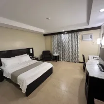 Room is good, Service is excellent -Staff are all very accommodating and they all wear smiles, specially the Front desk Personnel. restaurant is excellent -the food is an A+, you don’t need to go out to find comfort food it’s all in there. Location wise, 15mins away from the town proper but it’s all good, tricycles are available anytime.