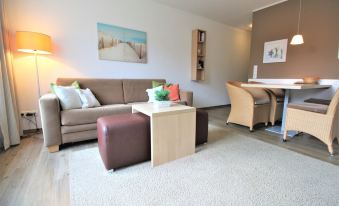 Die Wohnung war sauber, gut ausgestattet, geschmackvoll eingerichtet, liegt strandnah, der Strandkorb ist inklusive.