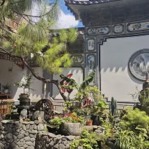 This guesthouse is the owner's family home, run by a Dali Bai ethnic family who all live on-site. This personal touch means they're incredibly attentive and genuinely care about their guests' needs. The location is superb, right by the South Gate – a major advantage. We stayed for 4 nights, splitting our time between a family room and a garden view room. Both rooms were clean, spacious, and well-appointed. The housekeeper cleaned daily, and their attention to detail was evident throughout. The bathrooms were spotless too. The ground floor courtyard is exquisitely designed, with bonsai, gentle water features, and miniature pagodas artfully arranged among vibrant flowers, making it truly beautiful. The owners even change the fresh flower arrangements in the vases every day, a clear sign of their appreciation for a beautiful life. For two of our nights, we enjoyed the largest and arguably best room – it was incredibly comfortable, and we were thoroughly satisfied. You can capture stunning mountain views right from the doorway (a common area, so all guests can enjoy and photograph it!). Make sure to venture up to the next floor! Next to the third-floor rooms, a spiral staircase leads up to a swing. From there, you can watch the misty mountain scenery unfold while gently swaying. Swinging with Cangshan Mountain as your backdrop is an absolutely magical experience!