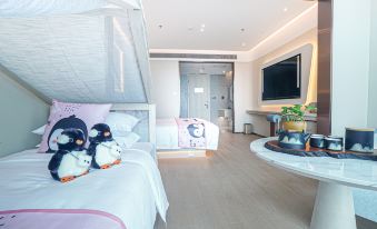 親子套房樓上樓下各一張床,適合我們一家四口。服務不錯但是酒店新裝修,房間沒有通風的窗户,還是有點味道。酒店內就可以看到企鵝,買的套票去海洋館很方便。