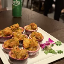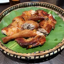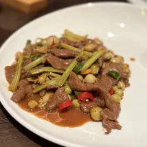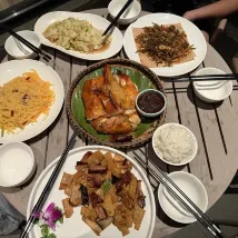 The restaurant's food was decent overall. The passion fruit ribs, however, were served cold, and after being fried, the ribs themselves were particularly tough. The sweet and sour flavor was acceptable. The roast chicken and stir-fried beef were quite good and paired well with rice.