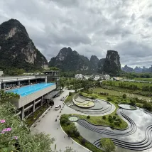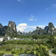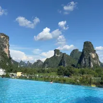 The hotel offers stunning views, and the outdoor pool was a definite highlight. We swam on both our first afternoon and second morning, and the kids absolutely loved it. We also had the unique experience of making Zhuang brocade sachets. Lunch at the hotel was surprisingly affordable, with our group of 10 paying around 100 RMB per person. Upon check-out, we even received thoughtful farewell gifts. Highly recommended!