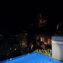 1. The hotel's scenery is simply breathtaking. Its private grounds are beautifully landscaped, surrounded by majestic mountains, and the rooftop pool offers stunning panoramic views. The hotel premises are dotted with picturesque spots, and a local attraction is conveniently located just a short walk from the entrance.