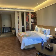 2. The service throughout our stay was outstanding. Upon arrival, staff immediately greeted us, opened the car door, and helped with luggage. Check-in was efficient, and the team was incredibly friendly, offering tea as soon as we entered the lobby. They went above and beyond when we needed the beds pushed together for our family, promptly arranging for assistance, which was incredibly thoughtful. Our room was spotless and very well-appointed, with complimentary mini-bar drinks. They even provided thoughtful touches like disposable facial towels and proactively offered children's dental kits and slippers. In the evening, a complimentary fruit platter and local specialty 'Bingfen' (ice jelly dessert) were delivered to our room. On the first floor, there's also a complimentary sachet-making workshop for children, perfect for little girls. We were also pleasantly surprised by the farewell gift bag upon check-out, which contained practical items like a mini-fan, mosquito repellent, a mugwort herbal hammer, a massage comb, and an umbrella – clearly a lot of thought went into it.