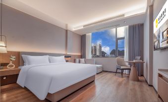 帶孩子來崇左旅遊,選了這家店,距離德天瀑布和峒那嶼灣 明仕田園這些景點距離都不算很遠。房間衞生做得不錯很整潔,前台跟客房也都很有禮貌,整個酒店設施都還是很新,就是沒有專用的停車場,車位都在酒店路邊停車位,但這不影響它的入住率,見這家酒店回頭客人挺多,總的來説很不錯的酒店,畢竟床品跟房間內部真的很不錯。性價比很好,連住兩晚,值得推薦入住。