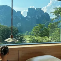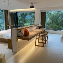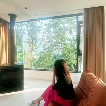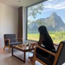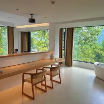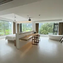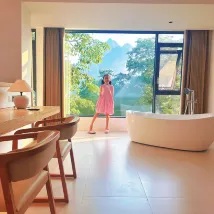 The room was fantastic, clearly one of the hotel's best room types. It featured large, panoramic windows on two walls, offering direct views of the mountains and rice fields. The amenities were new and spotless, and the lighting was bright and pleasant. Breakfast was a bit basic, and I didn't find many substantial options among the main courses. I'd suggest they offer dishes like fried rice and noodle soup to enhance the breakfast selection.