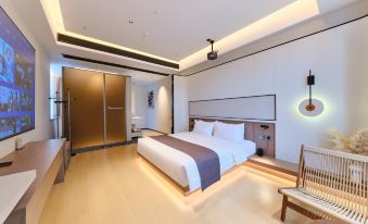 房間很大,很乾凈很整潔,特別喜歡,睡得也很舒服,屏幕很大,看電影很爽,值得來訂。