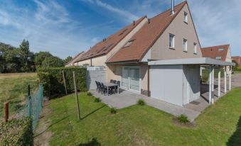 De Haan aan Zee: Residence "Boonenhove". On the outskirts, 900 m from the centre of De Haan, in a secluded, quiet position, traffic calmed area, 1.5 km from the sea, 1.5 km from the beach. In the house: central heating system. Supermarket 300 m, bar 1 km, bakery 1 km, bicycle rental 1.5 km, tram "De Haan Waterkasteellaan" 850 m, bus stop "De Haan aan Zee" 1 km, railway station "Oostende" 13 m, sandy beach "Strand De Haan" 1.5 km, park "La Potinière" 1.5 km. Golf course (18 hole) 2.5 km, surf school 2 km, sailing school 2 km, tennis 1.5 km, indoor tennis centre 3 km, minigolf 1.5 km, riding stable 500 m, sports centre 3 km. Nearby attractions: Brugge 18 km, Oostende 11 km, Blankenberge 10 km, Sea Life 11 km. Please note: suitable for families. The owner does not accept any groups. The owner does not accept any youth groups. Neighbourhood highly sensitive to noise. Quietness and good behaviour expected. "Boonenhove nr.57 with parking", 5-room villa 125 m2 on 3 levels. Object suitable for 6 adults + 2 children. Comfortable furnishings: living/dining room with dining table, digital TV, international TV channels, CD-player, DVD and electric heating. Entrance hall with separate WC. Kitchen (oven, dishwasher, 4 induction hot plates, toaster, kettle, electric coffee machine, combination microwave). Upper floor: 2 double bedrooms, each room with 1 double bed (1 x 160 cm, length 200 cm). 1 room with 1 x 2 bunk beds (90 cm, length 200 cm). Shower/WC. Heating. 2nd upper floor: 1 double bedroom with 1 double bed (140 cm, length 200 cm). Terrace 15 m2, south facing position. Terrace furniture. Very beautiful view of the countryside. Facilities: washing machine, children's high chair, baby cot, hair dryer. Internet (WiFi, free). Parking (roofed, 2 cars). Please note: non-smoking house. Smoke alarm, fire extinguisher.