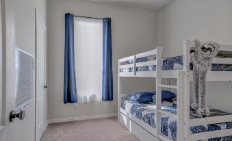 1 bunk bed 2 single beds and 2 queen beds