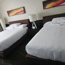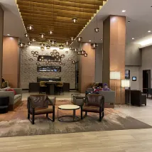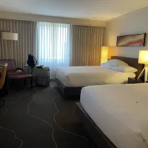 The room was big and nice, but the shower curtain smelled and the drilling noise was heard at 6:30 in the morning and again at 9:30 at night. It didn't seem to be construction at the hotel, but nearby construction.