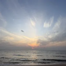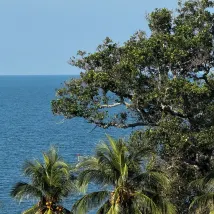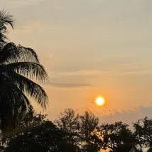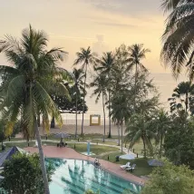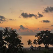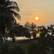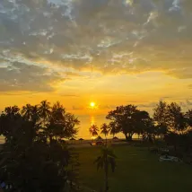 The service was excellentโvery warm and friendly. The facilities were complete, and the scenery was absolutely stunning! This is the view from the Seaview Room: an orange sunrise over the blue ocean.