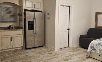 Kitchenette: The compact yet functional kitchenette features modern appliances, including a microwave, refrigerator, and a coffee station. Whether you're whipping up a quick cup of coffee or preparing a light snack, this space is equipped for your convenience. (Disclaimer: NO STOVE/OVEN)