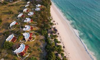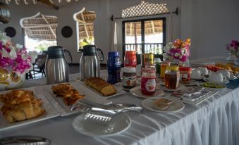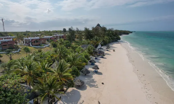 Un petit hôtel divisé en 15 maisons indépendantes face à l'Océan. Grande plage de sable blanc, spots de coraux et de plongée à quelques centaines de mètres. Ma villa Eucalyptus : au moins 150m2, sobre, sol en parquet, joliment meublée, bonne literie, moustiquaire installée chaque soir. Grand dressing, grande salle de bains avec double douche et wc séparée. La clim est un peu bruyante mais avec des boules Quies on n'entend plus rien. Grande terrasse privative et accès direct à la plage. De l'eau potable est réapprovisionnée chaque jour, il y a un frigo. Pour ceux qui veulent faire la fête ou venir avec leurs enfants : cet hôtel n'est pas pour eux (tant mieux). Ici on vient chercher le calme, et pour le bruit, celui des vagues et du vent. Il y a une famille de petits singes dans le parc, des oiseaux magnifiques, des flamboyants en fleurs. Restaurant correct, peu varié mais avec de bons produits, surtout les fruits frais (Ananas mangues papayes fruits de la passion : un régal !) et les poissons. Excellent service, gentil et doux. Il y a évidemment des Français qui passent leurs commande et "donnent leurs ordres" en français, comme s'ils étaient encore aux Colonies, alors qu'on parle anglais en Afrique de l'Est. Mais ça ne les fait pas parler anglais pour autant. On a honte pour eux. Des points plus négatifs : - pas de vrai café au petit-déjeuner, mais du soluble... Pour un expresso il faudra payer. - L'hôtel n'accepte pas les cartes bancaires : il a fallu qu'on me conduise en voiture à la petite ville voisine pour retirer des liasses de shillings tanzaniens, ça a pris une heure car chaque retrait maximum était limité. - la piscine est impraticable car sans moteur pour filtrer l'eau. Conseil : munissez-vous impérativement de chaussures en plastique pour aller dans la mer : il y a énormément d'oursins. Et cette partie du lagon est assez ouverte côté océan donc les marées sont importantes