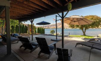 No bank, sandy beach, waterfront on Lake Entiat. A hot tub built on waters edge provides an unparalleled view. Private boat launch, expansive heated deck, enjoy ski/paddle/kayak with most protected waters on lake. 4 season- perfect 4 family- 4 Br, 3bth A-frame , 2700 sq ft, game room, putting green course, outdoor BBQ & flat iron grill, mooring buoys, shared dock, large yard. Two paddleboards, kayak and various life vests. 20 mi Leavenworth & Mission Ridge ski, Lake Chelan. Oktoberfest, Lights of Christmas, Chelan Winterfest, wineries, biking, hiking, and cross country downhill ski.About pets:No pets allowed.About checkOut:Check out before 10:00 AM.About children:Children allowed: ages 0-17.About checkIn:Check in after 4:00 PM.About smoking:Smoking is not permitted.About minBookingAge:Minimum age to rent: 21.About events:No events allowed.