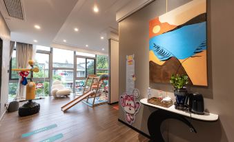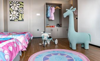 A warm homestay specially designed for families! Located at the foot of the picturesque Zhao Gong Mountain, it is not only a secluded paradise away from the hustle and bustle, but also a perfect place where nature and family fun blend seamlessly. Every deep breath feels like inhaling full negative oxygen ions, allowing your body and mind to be completely released and relaxed in the fresh air. Close to the homestay, a series of desirable natural and cultural attractions are within reach: the World Heritage Dujiangyan Scenic Area, which impresses with its ancient and wise water conservancy project; Panda Valley, where you can observe the adorable pandas up close, letting children learn about environmental protection while getting close to nature; and the Yang Tian Wo Square, which adds an irreplaceable leisure time to your journey with its unique charm. The homestay is presented in the form of garden villas, with every brick and tile made of environmentally friendly materials, carefully constructing a modern yet naturally charming architectural style. We have specially set up two popular IP-themed family rooms: Ba La La Magic Fairy and Super Wings, both decorated with childlike fun and equipped with rich exclusive play facilities for children, making the kids excitedly enjoy their own dream space. Moreover, there is a cheerful children's playground hidden within the homestay, where children can fully unleash their nature and enjoy a carefree childhood. We also provide children's bathrobes, various children's toys, and convenient free parking, ensuring that the needs of every family member are well met, making your family trip more relaxed and enjoyable.