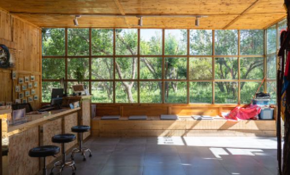 Environment: The exterior looks quite ordinary, consisting of two rows of houses, but the rooms are immaculately clean. The interior is also very Dunhuang-style, with a Dunhuang caisson ceiling design. Looking up from the bed, I feel a strange sense of relaxation and joy as if I were transported to another land. There are many jujube trees in the yard.