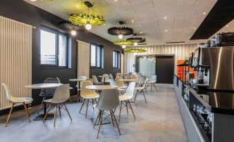 I found the location of the hotel to the airport to be excellent. It was about a 15 minute walk via a sidewalk trail that went up to the train station rails and then I could just go straight up to the airport. The room was very clean. The temperature was easy to adjust to my liking, the bathroom was lovely, and the staff were very friendly and helpful. I was able to drop my bags off in the morning and then take them to my room after a fun day and do Dorf. I did not eat while there however I was able to have morning coffee and the coffee machine was lovely and had a variety of coffee choices. I would definitely stay in Ibis hotels again thank you for a wonderful stay!