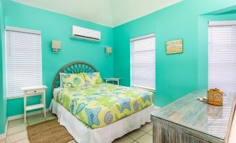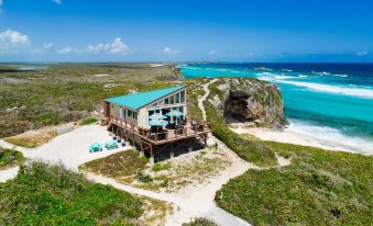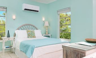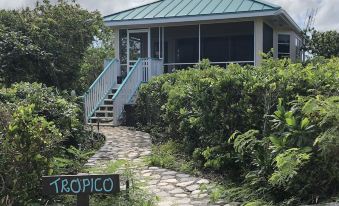 Tropico Cottage is a one-bed, one-bath studio cottage and part of Dragon Cay Resort. Nestled on a ridge above Dragon Cay it offers sweeping views of Dragon Cay rock formation at Mudjin Harbor and the Atlantic Ocean. There is ample space for a couple with spacious living and dining areas. Large windows and sliding doors lead out to a screened-in porch facing toward the ocean. Perfect to relax and admire the magical views after a day exploring the hidden treasures of Middle Caicos.