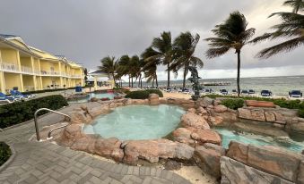 Yes, 1st floor beachfront condo, just steps away from a private beach, beautiful view has a swimming pool for guests.Does 1st floor beachfront condo, just steps away from a private beach, beautiful view provide a pool?