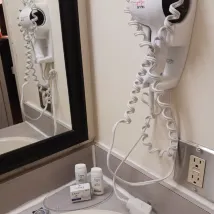 This Travelodge is a prime example of "you get what you pay for." It was a bargain price for basement amenities. Their swimming pool and hot tub weren't available. In the room, the hair dryer wouldn't work, and they provide an iron but no ironing board.