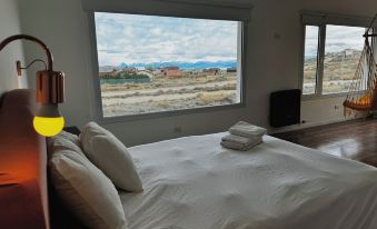 Upstairs, discover a spacious bedroom with gas heating and large windows offering stunning views of the Andes and Lake Argentino. Access this room via stairs. There’s also a second fully equipped bathroom with a fantastic shower, perfect for unwinding after a long day of trekking.