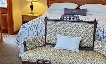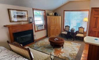 Our Kennedy Cottage includes a king size bed, private bath, and gas fireplace . It has a kitchenette with coffee maker, microwave, and fridge and direct access to the hot tub and pool. Bath Robes, Beekman Bath Amenities, new bedding, Magnavox Roku TV, and upgraded WIFI included. Guest lounge on the second floor where you will have access to a daily continental breakfast, coffee 24/7, Board Games, and glassware.