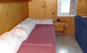 49 m2. More information by the provider: Triplex apartment house in chalet-style. The apartment (approx. 49 m2) is on the second floor. The chalet is located in the middle of gentle meadows on the edge of the forest, about 2 kms out of town center. Very peacefully located. The 1-room apartment has got a large living-/sleeping room with 3 single beds, sofa, tv, internet access, an open kitchen with Nespresso coffee machine, shower-toilet. South-facing balcony with a lovely view. (Steep road to the house, in winter car snow chains can be essential). Pets not allowed.