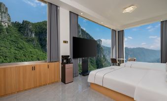房間內都是落地窗,早晨定好鬧鐘,呼叫小愛同學,打開窗簾,震撼的恩施大峽谷就在眼前,伴隨着日出,超級漂亮!