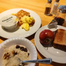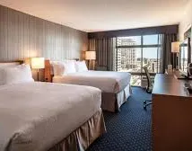 In town for a sad occasion , a memorial service for a close friend. The evening desk staff person, Tigist, was outstanding in all ways! Her welcome was warm. While accomplishing all the checkin tasks efficiently, she offered kind sympathy and took time to invite us to share our story. Roger, the daytime desk person, was another welcoming efficient person. He quickly responded to any needs, including assuring us that we were welcome to relax in the (very nice) lobby lounge and that our car could remain parked free of charge until 5p. Checkout is 11am. Also breakfast is a hot and delicious buffet while real plates and silverware. There is an upcharge for it but is actually worth the price.