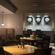 The facilities are a bit dated. The TV is old and the furniture is not very modern. The location is great, as it is downtown close to restaurants, banks, T-Mobile, various shops and the university.