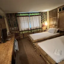 Retro style hotel Decorated with classic bamboo. There are standard room equipment. Near delicious restaurants The staff greeted us with kindness. There is breakfast at each place. It's delicious and gives me energy to go to work.