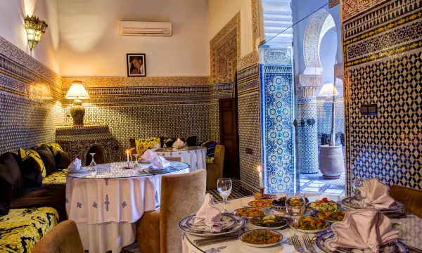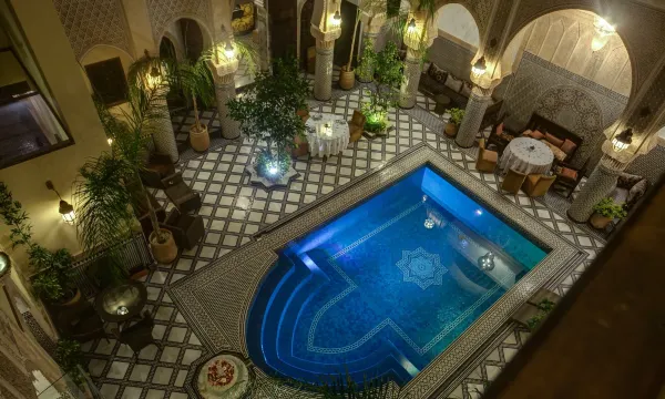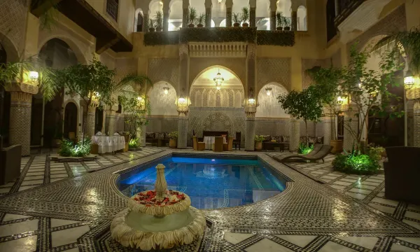 Location: The hotel is situated in the heart of the bustling old city, offering easy access to local attractions and shopping in Fez. The rooftop terrace provides panoramic views of the city, perfect for enjoying sunsets.