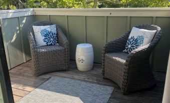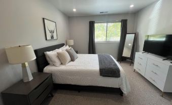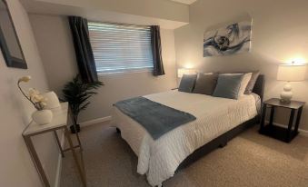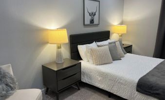 When it's time to unwind, head to one of the two bedrooms, where a comfy queen-sized bed awaits you, along with a well-organized closet and dresser. Both bedrooms provide a cozy escape for restful nights after a long day of exploring the nearby vineyards and attractions. The condo features a newly renovated and modern bathroom with a quartz tub-shower combo, a quartz vanity, and a spacious linen closet for your convenience.